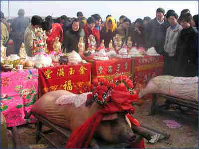 因此,谷雨節(jié)也叫做漁民出海捕魚的"壯行節(jié)"。舊時(shí)村村都有海神廟或娘娘廟,祭祀時(shí)刻一到,漁民便抬著供品到海神廟、娘娘廟前擺供祭祀,有的則將供品抬至海邊,敲鑼打鼓,燃放鞭炮,面海祭祀,場面十分隆重。