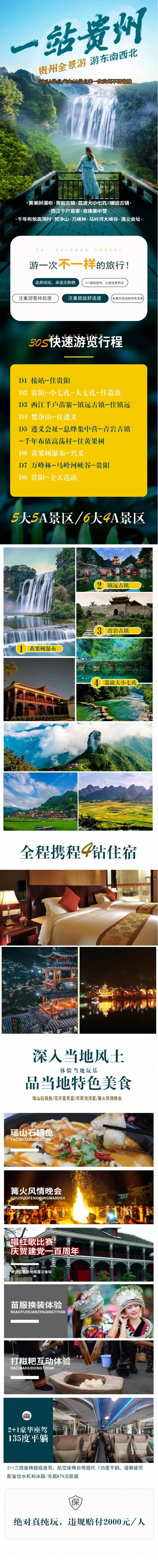 1、景交 400 元/人(黃果樹觀光車 50 保險 10,小七孔觀光車 40 保險 10,西江電瓶車 20,鎮遠電瓶車 20 梵凈山環保車 20 往返索道 140,萬峰林觀光車 50 高蕩電瓶車 20,遵義電瓶車 20 需游客必須自理)。
