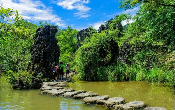 上午:早餐后乘車前往荔波。抵達后用中餐,后游覽世界自然遺產地,中國最美麗的地方之一【小七孔景區】(不含小七孔電瓶車40元/人,保險10元/人,必須消費敬請自理)在寬僅1公里、長12公里的狹長幽谷里,集洞、林、湖、瀑、石、水多種景觀于一體,玲瓏秀麗,有“超級盆景”的美譽。游覽景區名字由來地【小七孔古橋】。欣賞景區靈動多姿的各色瀑布:起迭著【68級跌水瀑布】,順贄而下,奔瀉而去;【拉雅瀑布】布精巧醉人,水珠飛濺;【臥龍潭瀑布】銀絲瀉地,潭水色彩斑斑斕絢麗;【翠谷瀑布】在群峰緊鎖中蒼翠欲滴。感受赤足濕身樂趣的【水上森林】,清澈的水流沖刷著青石,行走于其中,宛若身臨瓊瑤仙池;【鴛鴦湖泛舟】(不含鴛鴦湖游船30元/人,非必須消費項目,自愿消費)—尋找一份愛情;嫵媚而迷人的【響水河】更是貫穿了整個風景區。