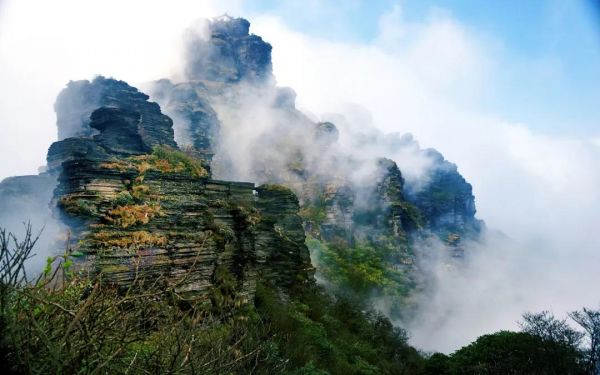 早餐后7:30乘車(約2.5小時)前往【梵凈山景區】(不含梵凈山電瓶車20元/人,往返索道140元/人,必須消費敬請自理)登國家自然保護區,探訪聯 合國“人與生物圈”保護網、國家級自然保護區,佛教名山、名岳之宗、彌勒道場,經東線上山,觀梵凈山標志性景物——蘑菇石,爬金頂、攀登高達94米高的佛教勝地—金頂(老年人慎重選擇攀登),親臨摩崖石刻、攀巖上鐵鏈上靈宮臺、穿挺心石、過慈航橋、拜觀音石窟、穿越金刀峽、上金頂。釋迦殿拜[現在佛],過天仙橋、彌勒殿拜[未來佛],至海拔2336米金頂頂峰,一覽眾山;巨大的天然氧吧,呼吸沁人心肺的新鮮空氣,遠離人間,體驗梵天凈土的那份神圣感覺,游覽結束后乘車返回貴陽入住酒店休息。
