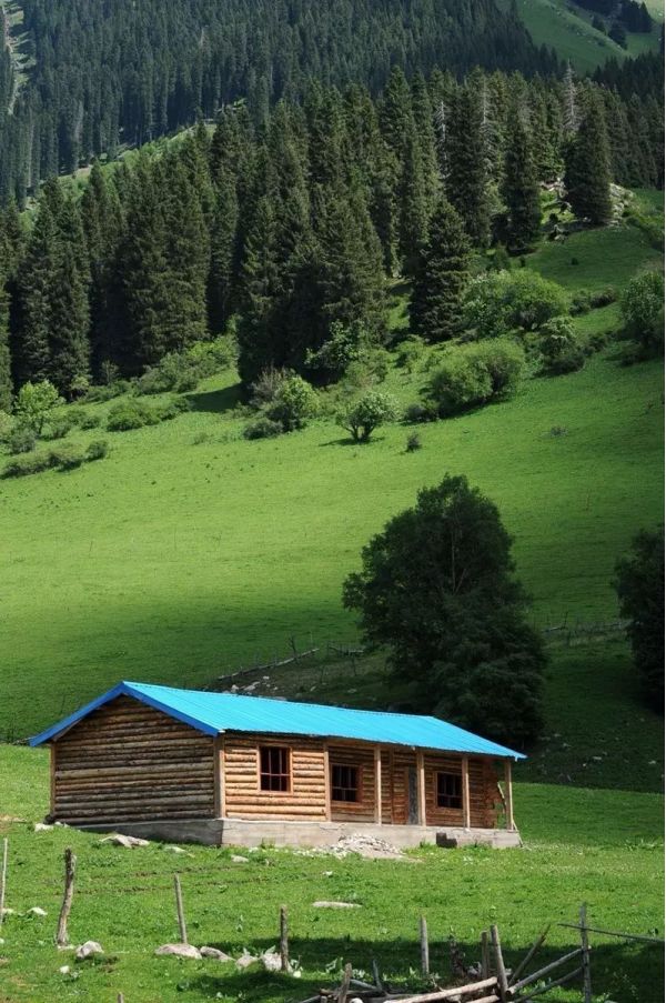 瓊庫什臺村幾乎所有的民房都是木建筑,有的房子是由整根原木搭的,有的房子是將原木從中間一分為二,通過掏、榫、拱等各種工藝搭起來的。在棚圈部分甚至連樹皮都沒有剝離。建筑的平面、立面和細部處理、建筑技術和施工技藝等保持著建筑文化的印跡,歷史信息豐富,具有較強的原真性,是至今伊犁河谷保存完好的一個木構建筑群。這里夏季多雨、潮濕,瓊庫什臺村的先民根據當地的自然環境和生存需要,就地取材,用木材建房,形成了這個獨具特色的村落。因松、杉樹木質堅硬,經久耐用,從而使當地的木構建筑沒有變形,使用壽命長。加之地處大山深處,交通不便,各家各戶對自己的房屋用心保護,故村落中大量的民居保存完好,部分民居已有100多年的歷史,具有豐富和完整的歷史文化內涵。從瓊庫什臺村以木構建筑作為哈薩克族牧民的居住建筑看,這無疑是牧民們從流動性居住方式向永久性居住方式的演變。還保留著很多上世紀五、六十年代具有哈薩克族游牧民族特色的木屋。