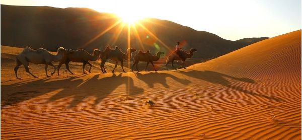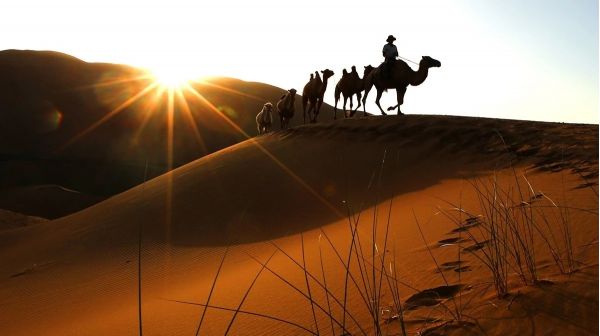 2、探尋中國最美的「巴丹吉林大沙漠」,拍攝駝隊在落日的沙漠中旖旎而行,日出日落時美麗的沙漠光影線條;