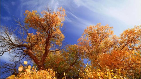 當青藏高原從地面上挺拔而起時,胡楊便跟隨著來到了新疆河岸林。
