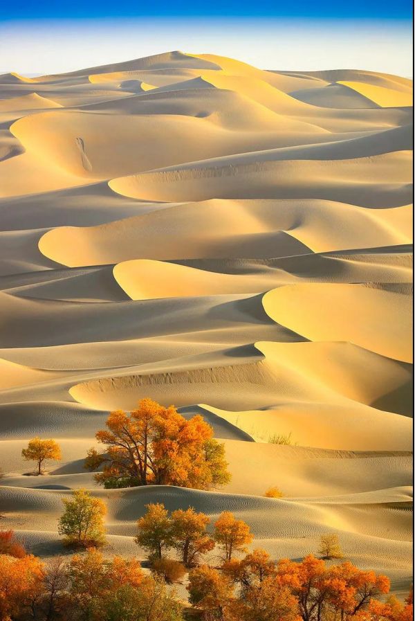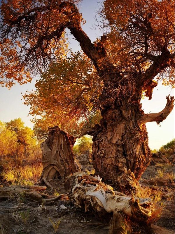 縱觀,除了古地中海稀稀落落的胡楊,其余世界上百分之60的胡楊聚集在了中國,而中國的胡楊林幾乎全分布在了祖國的西北。 那片胡楊,在天地間駐足了千年,見證了曾經的滄海、桑田變為了茫茫大漠。
