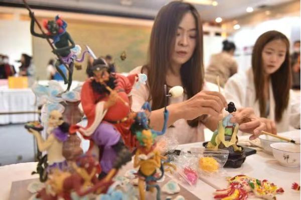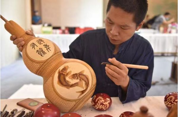 在現(xiàn)場(chǎng),琳瑯滿目的非遺手造呈現(xiàn)在我們面前,有現(xiàn)場(chǎng)雕刻的東昌葫蘆讓外國(guó)友人大呼精彩,也有精心雕刻的木版年畫引人好奇,還有東昌毛筆、剪紙、面塑等多種非遺文化進(jìn)行展示。