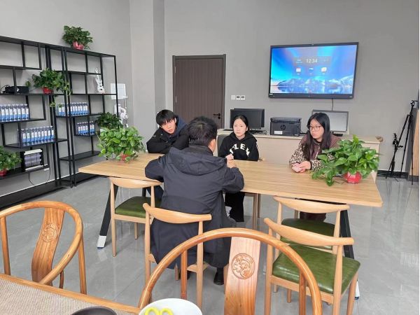 3:30我們陸續(xù)來到實(shí)訓(xùn)室,苗苗在做PPT,下午4:00,劉老師來到了實(shí)訓(xùn)室,我們用大屏幕給李鑫諾把英語放到屏幕上,李鑫諾開始翻譯,劉老師把鑫諾不會的都一一解答出來。然后楊倚晴和李鑫諾先去吃飯了。苗苗和唐靜雯在談話。