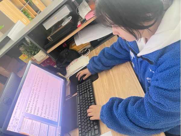 下午2:20,我們來到了實訓(xùn)室,由劉老師為我們進(jìn)行英語環(huán)節(jié)的指導(dǎo)。