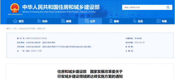 2022年6月30日,住房和城鄉建設部、國家發展改革委聯合印發《城鄉建設領域碳達峰實施方案》。《方案》提出,推進綠色低碳建造。優先選用獲得綠色建材認證標識的建材產品,建立政府工程采購綠色建材機制,到2030年星級綠色建筑全面推廣綠色建材。