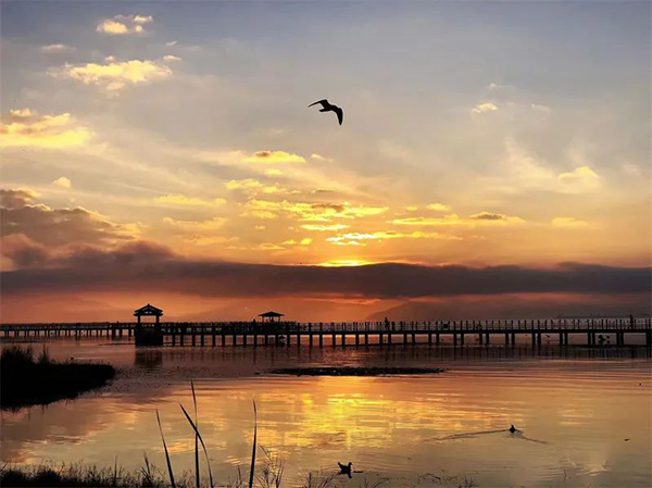 冬天的石屏異龍湖,不僅有從西伯利亞遠(yuǎn)渡重洋而來的紅嘴鷗,還有“半江瑟瑟半江紅”的詩畫風(fēng)光。