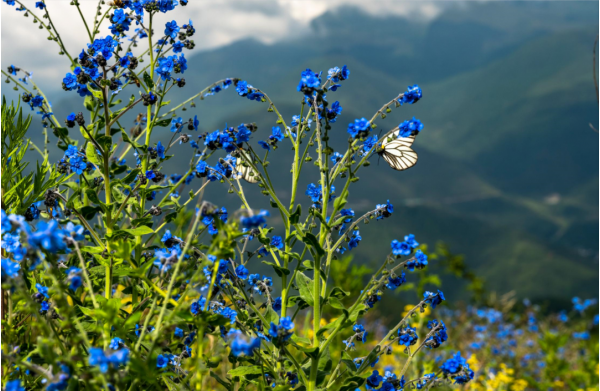 最近,在越西發現了一處絕美的“仙境”,藍紫色的野花繁星似地密布在,沒過膝蓋的綠草之中成群的蝴蝶在其間翩翩起舞。