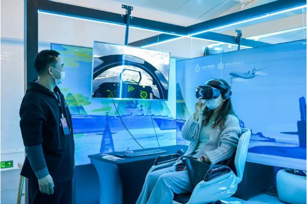展覽現(xiàn)場,“敦煌飛天”“二道井子”等VR項目吸引了不少觀眾駐足體驗。觀眾曹女士說:“戴上VR眼鏡,伴隨著空靈的音樂和渾厚莊重的鐘聲,身邊一直有飛天舞女環(huán)繞著我,還有漫天的花瓣飄落,不自覺地想要抬手碰觸,畫面特別美,值得體驗。”