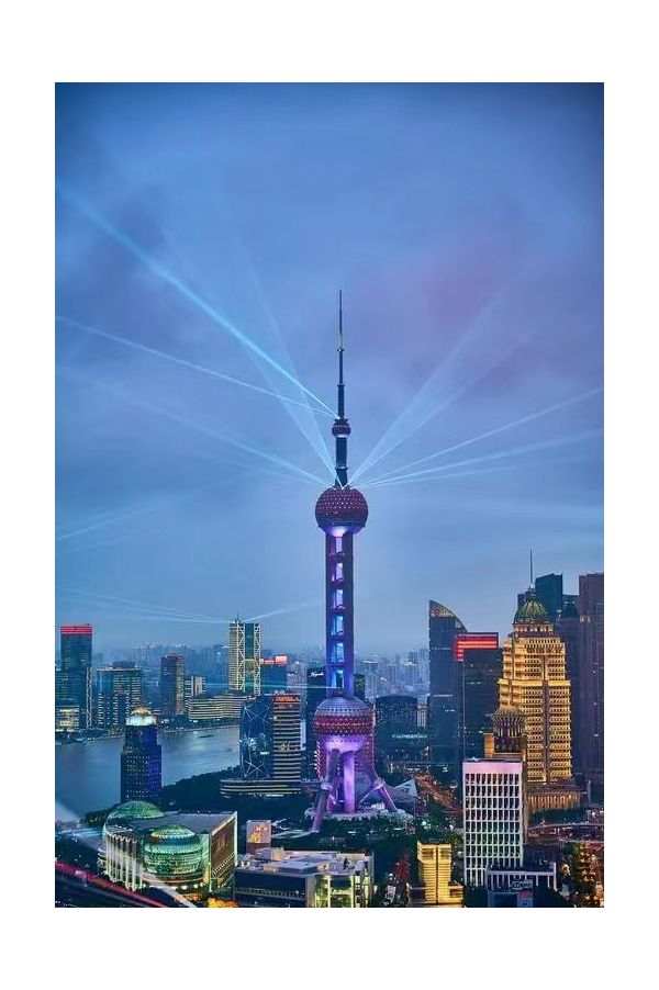 東方明珠廣播電視塔主體為多筒結構,由3根斜撐、3根立柱及廣場、塔座、下球體、5個小球體、上球體、太空艙、發射天線桅桿等構成,主體結構高350米,總高468米,總建筑面積達10萬平方米。