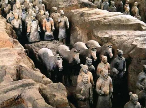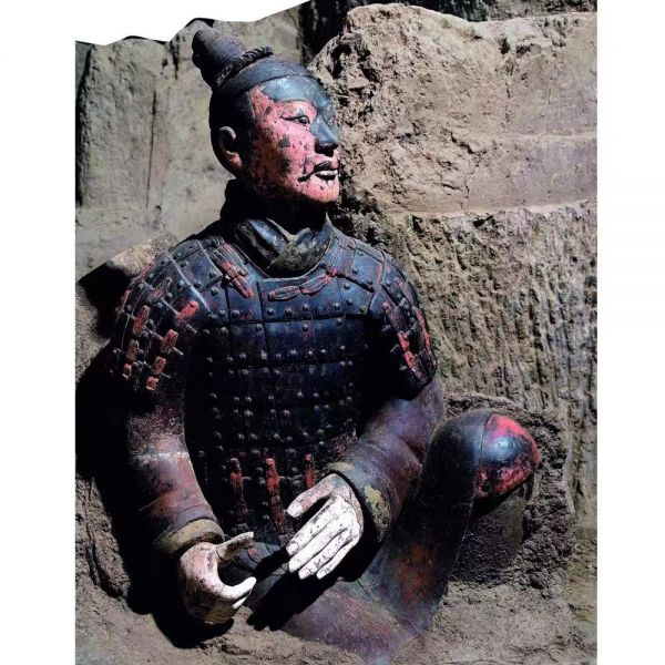 當(dāng)初的兵馬俑都有鮮艷和諧的彩繪,發(fā)掘過程中發(fā)現(xiàn)有的陶俑剛出土?xí)r局部還保留著鮮艷的顏色,但是出土后由于被氧氣氧化,顏色不到十秒鐘瞬間消盡,化作白灰。現(xiàn)在能看到的只是殘留的彩繪痕跡。