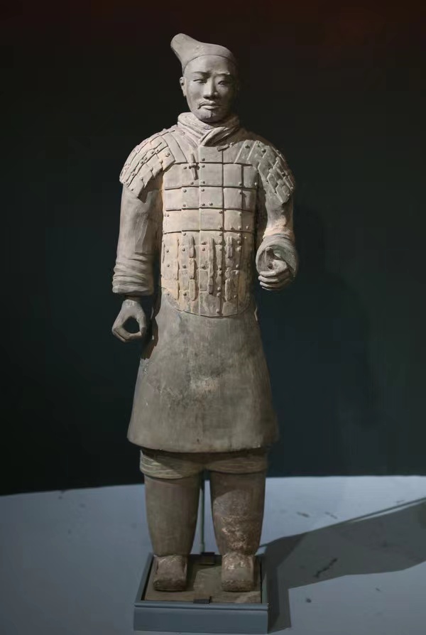 兵馬俑的塑造,基本上以現(xiàn)實(shí)生活為基礎(chǔ),手法細(xì)膩、明快。每個陶俑的裝束、神態(tài)都不一樣。人物的發(fā)式就有許多種,手勢也各不相同,面部的表情更是各有差異。從他們的裝束、神情和手勢就可以判斷出是官還是兵,是步兵還是騎兵。總體而言,所有的秦俑面容中都流露出秦人獨(dú)有的威嚴(yán)與從容,具有鮮明的個性和強(qiáng)烈的時代特征。