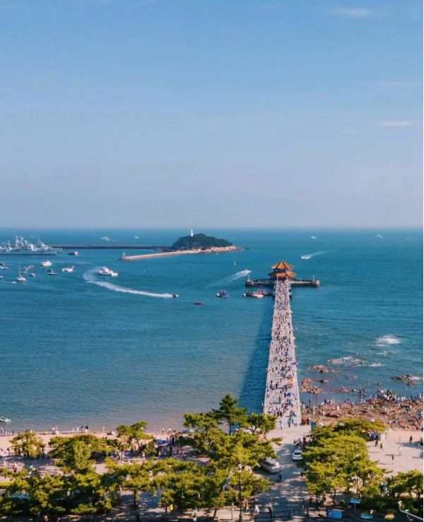 棧橋是青島海濱風景區的景點之一,首批國家AAAA級旅游景區 ,位于中山路南端,橋身從海岸探入如彎月般的青島灣深處。