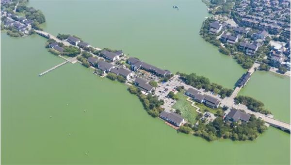 一池湖水,湖心小亭。一端是喧囂都市,一端是靜謐湖畔,七座小石塔以北斗七星排列,煙波浩渺獨(dú)有一番韻味。湖水清澈碧綠,微風(fēng)徐徐,無限風(fēng)光盡收眼底。