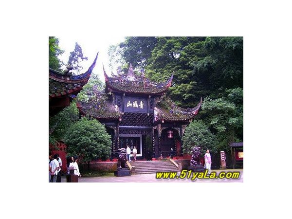 山內古木參天,群峰環抱,四季如春,故名青城山。青城山分青城前山和青城后山。前山景色優美,文物古跡眾多;后山自然景物原始而華美,如世桃園,綺麗而又神秘。