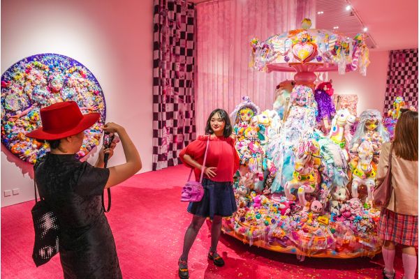 00后”藝術(shù)家郭宇恒的個(gè)展“SKIRUA的未來樂園”,展示色彩絢麗的玩偶、貼紙、飾品等。