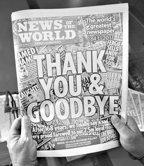 【網宣部】朋友隨聊之旅旅行社從英國歸來,打開行李包沒見啥新奇古怪的玩意兒,倒是有厚厚一沓英文報紙,封面上寫著大字標題“謝謝,再見”,竟然是《世界新聞報》的告別版!眾所周知,《世界新聞報》迫于“竊聽門”事件的壓力,已正式???月10日出版的報紙是其最后一期。朋友笑道,怎么樣,我夠走運吧,頭一回出國,就碰上了收藏“終刊號”的好機會。