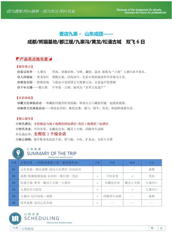 九寨雙飛6日游 聊城發(fā)團(tuán) 純玩 無(wú)購(gòu)物 成都 熊貓基地 都江堰 九寨溝 黃龍 松浦古城 ...... 價(jià)格 3190 3490 報(bào)名電話 0635 8681234