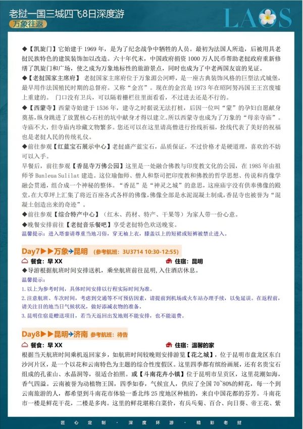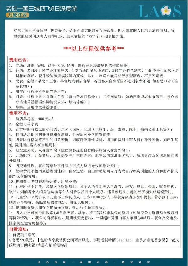 老撾四飛8日游 聊城發團 純玩 無購物 大皇宮 光西瀑布 坦江溶洞 藍色瀉湖 凱旋門 價格 4380 4680 報名電話 0635 8681234