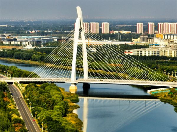 興華路徒駭河大橋全長近384米,大橋采用雙向6車道設計,很是雄偉壯觀。