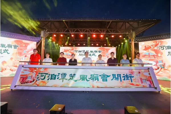 開街儀式以“楚風(fēng)+晚會(huì)”的模式進(jìn)行,儀式之后,廟會(huì)3個(gè)小舞臺(tái)也陸續(xù)上演精彩節(jié)目。在橘頌廣場(chǎng)的民俗舞臺(tái)上,火把舞、上刀山、雜技蹬缸、變臉、柔術(shù)表演輪番上演。在離騷廣場(chǎng)的非遺舞臺(tái),皮影木偶戲驚艷亮相。在華麗精致的畫舫游船上,舞蹈演員伴著古樂翩翩起舞,為游客呈獻(xiàn)了新穎的“水上視覺盛宴”。當(dāng)晚,主舞臺(tái)還有非遺傳承人帶來的茶館評(píng)書。
