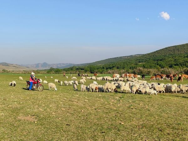 牧民道布敦尼瑪家所在的阿日呼布嘎查,是阿魯科爾沁草原游牧系統(tǒng)23個(gè)嘎查之一,道布敦尼瑪家也是這片草原上依然堅(jiān)持傳統(tǒng)游牧遷徙的牧戶。15日清晨,道布敦尼瑪與妻子呼達(dá)古拉把蒙古包、柵欄、食物、衣服等生活物資裝在了隨行的車上。在用鮮奶告別藍(lán)天、草原后,斯琴便跟隨道布敦尼瑪一家趕著牛羊群出發(fā)了。