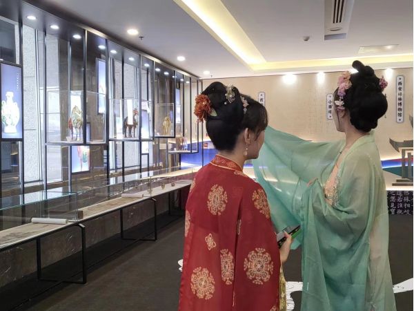 薦福問安·盛世風華”文物精品展、“拓尋碑林·源遠流長”碑林拓片展以及主題品鑒沙龍活動。其中,“薦福問安·盛世風華”文物精品展利用機場T3航站樓商務貴賓廳,展示了西安博物院、陜西唐三彩藝術博物館館藏珍品文物復仿制品;“