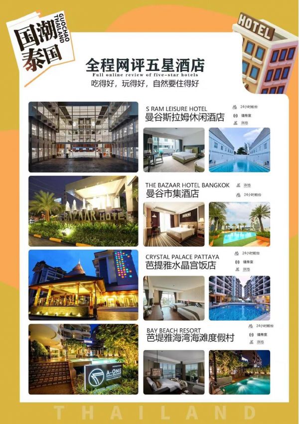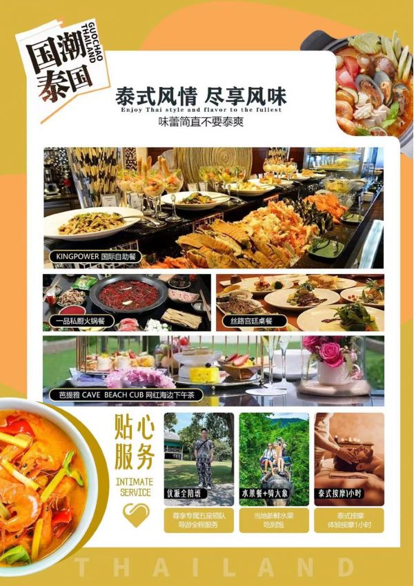 酒店早餐后前往【沙美島samet國家公園自然保護區】(游玩約4H)位于泰國曼谷東南方的羅永,最吸引人之處在于擁有全泰國最優美的沙灘,一年四季均可享受風浪板、浮潛滑水等水上活動,還擁有芭堤雅所沒有的寧靜閑適。去芭堤雅,一定要去沙美島,因為沙美島的確是名副其實的“沙美島”。那黃里透白,面粉一樣細嫩的海沙,鋪成又長又寬的沙毯,為太平洋鑲上了金色的花邊。島上那椰子樹、棕櫚樹等構成的熱帶叢林,像忠誠的衛士守護著漂亮的沙灘,也守護著來自世界各地的觀光客和海泳者。沙美島不僅有美麗的熱帶風光和第一流的海泳場,還有那別具特色且價廉物美的熱帶水果和海鮮燒烤品嘗.(島上的付費娛樂活動供游客自主選擇與旅行社無關。)【泰式按摩】(約60分鐘),擁有四千多年歷史,手法涵蓋了按、摸、拉、拽、揉、捏等動作。可以使人快速消除疲勞,還增強關節韌帶的彈性和活力,促進體液循環。來到新晉網紅下午茶【cave beach club】(自由活動時間不少于90分鐘),藍天白云下,面朝大海,享受海風,假裝身在夏威夷,芭提雅應該沒有比這里更新更適合打卡的下午茶場所了吧。