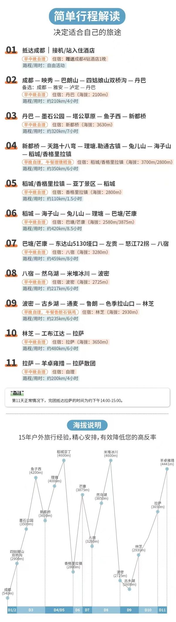 海拔情況:3630m—3990m—4000—4696m—4500m—3700m/2800m