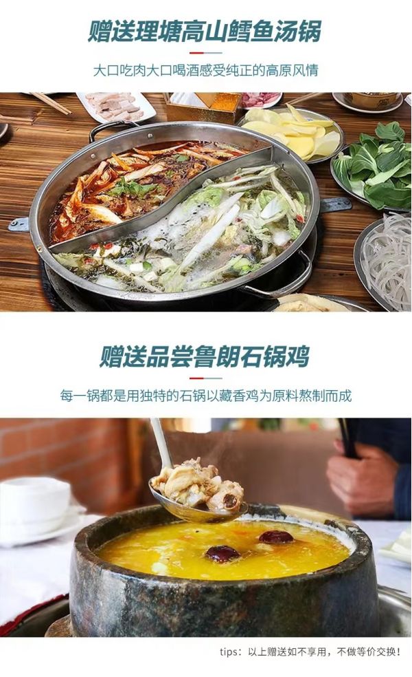 l 贈送2頓特色餐(1頓理塘高山鱈魚+1頓魯朗石鍋雞);