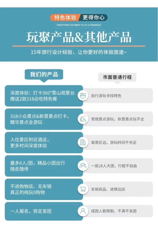 私人訂制:我們業務范圍囊括了全國各大城市,川西、西北、新疆、西藏,在路上永遠有我們的身影。我們將為每一個有定制需求的你策劃出獨屬于自己的完美旅行。