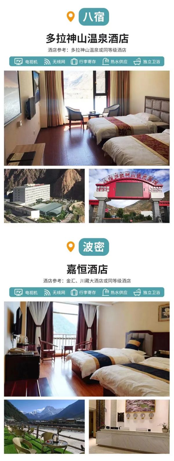 l 波密:嘉恒酒店、金匯、川藏大酒店或其他同級酒店