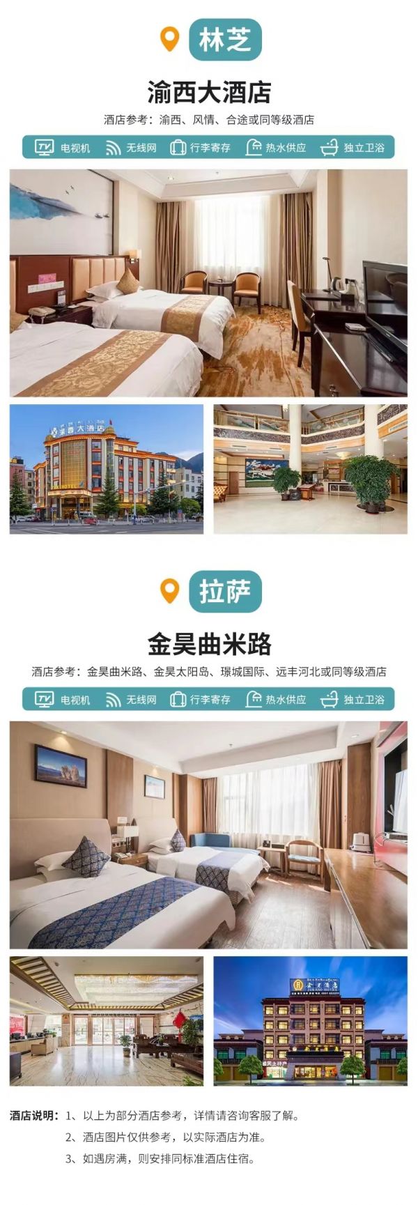 l 林芝:風情大酒店、渝西、合途或其他同級酒店