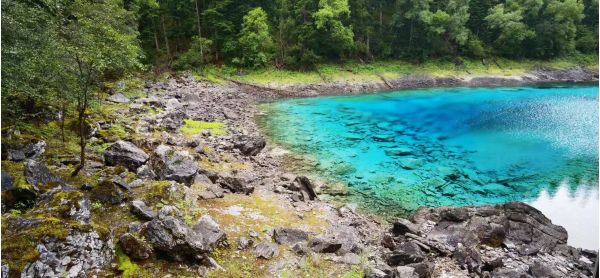 九寨溝四季景色各異:仲春樹(shù)綠花艷,盛夏幽湖翠山,金秋盡染山林,隆冬冰塑自然。雪峰、翠海、疊瀑、藍(lán)冰、彩林、藏情,“九寨六絕”倍受世人青睞?!K年碧藍(lán)澄澈,古樹(shù)環(huán)繞,奇花簇?fù)?,宛若鑲上了美麗的花邊,各具特色?