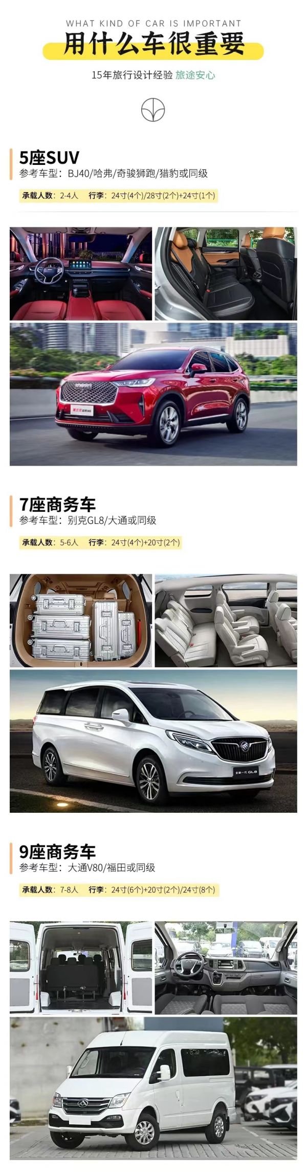 兒童椅說明:兒童5歲以下或體重18公斤以內,交通法規定必須乘坐安全座椅。攜帶兒童如果必須乘坐安全座椅請自行攜帶,旅行社無安全座椅提供。還望諒解~