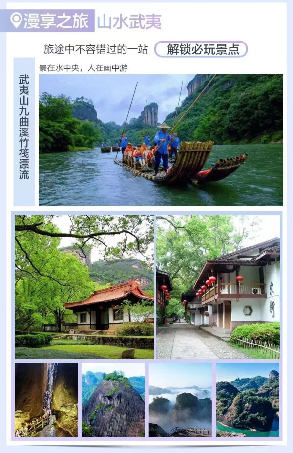 到達后導游接站游【大紅袍景區】四顆珍貴的大紅袍茶樹在九龍窠下,人稱“茶中之王”。游全國最窄的【一線天】,伏羲洞、靈巖洞、風洞三洞相映成趣、神仙樓閣等奇妙景 白天登天游,晚上聽相聲,----獨家贈送價值198元【大型相聲演出】---相聲新勢力,來聽聽武夷山茶文化和相聲文化的完美結合吧,嗑瓜子,品香茗,聽相聲,絕這才是旅行的正確打開方式!