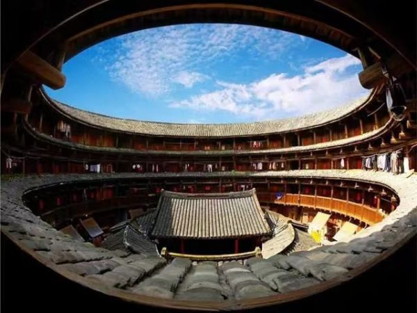 【懷遠樓建】于1905-1909年,是目前建筑工藝最精美、保護最好的雙環圓形土樓。樓高四層13米,直徑38米,每層34間,共136間,為簡氏家族所建。懷遠樓最引人注目之處在于內院核心位置的祖堂,也就是家族子弟讀書的地方“斯是室”。“斯是室”精巧秀氣,上下堂建筑占地190平方米,室內雕梁畫棟,古樸天然,書卷氣濃備注:中途停咖啡休息區,水果休息區為上洗手間,絕非購物店。