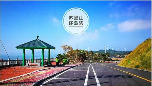 蘇峰山公路:東山島第一高峰,長 8.53公里,配步行道、觀景臺、服務(wù)區(qū)、停車場等旅游設(shè)施,是東山島風(fēng)景的一大亮點。山上名勝古跡眾多,是“東山島首屆國際山地半程馬拉松賽”和“2016中國?東山島首屆國際自行車賽”的賽道,也是福建最美公路之一。一邊青山一邊藍海,藍色的圍欄,橙、黃色的馬路,漫步在這里,一路風(fēng)景如畫!在蘇峰山環(huán)島公路上,遠眺東山島風(fēng)景,山海相應(yīng),是拍攝風(fēng)景和人像的好去處。