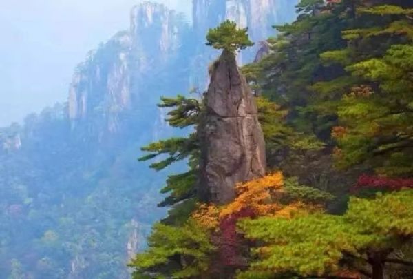黃山“黃山歸來不看岳”,這是吸引眾多游客登黃山賞美景的一大理由。這個季節,如畫的秋色為黃山平添了幾份秀美。黃山的秋天來得早,到了10月,黃山的月平均氣溫只有11.7℃。黃山的秋季,別有種種勝景,明代大旅行家徐霞客曾贊美黃山秋色“楓林相間,五色紛披,燦若圖繡”。仰望天空,黃山的天湛藍如洗,入了秋更顯得高遠,空曠無邊、萬里無云,更無一絲雜質,像一塊覆蓋大地的藍寶石。秋用赤、橙、黃、綠、青、藍、紫七色神筆把黃山描繪得色彩斑斕,濃墨重彩地勾勒燦若圖繡的世界,遠峰近松,到處充滿了秋色的誘惑,讓人難以抗拒。