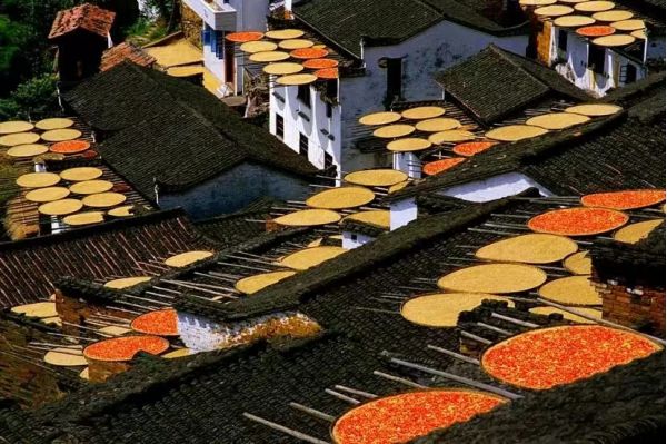 早上:08:00-08:30 各酒店接客人后出發,后車赴婺源,游“賞花圣地”、“全球十大最美梯田”、“世界級古村樣板”、“美術、攝影及影視創作基地”——【篁嶺】,景區獨特的“曬秋”景觀符號成功入選“最美中國符號”。篁嶺屬典型山居村落,民居圍繞水口呈扇形梯狀錯落排布。篁嶺因“曬秋”、聞名遐邇,落“天街”似玉帶將精典古建串接,徽式商鋪林立,前店后坊,一幅流動的縮寫版“清明上河圖”。 周邊千畝梯田簇擁,四季花海展示驚艷的“大地藝術”。 獨特的民俗文化體驗帶您走過索橋、滑過溜索、攀上高空熱氣球,俯瞰獨特的曬秋奇觀;參天古樹濃蔭匝地,錯落點綴在層疊的梯田、蜿蜒的青石板古道和曲折的清溪之間。三角梅、玫瑰等花海景觀變幻,穿行在隱約可見的廊橋亭閣和粉墻黛瓦的民居村落中,遠離都市喧囂。