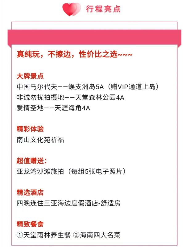 【1】亞龍灣是以大海、沙灘等自然景觀為主,游覽時為自由活動,請注意游覽時間,在導游規定的地點準時集合。沙灘上日照強烈,溫度高,請做好防曬工作,請攜帶好防曬霜(推薦防水型),遮陽帽,遮陽傘等遮陽用品。