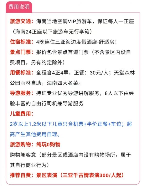 早餐:酒店早 中餐:自理 晚餐:海南四大名菜