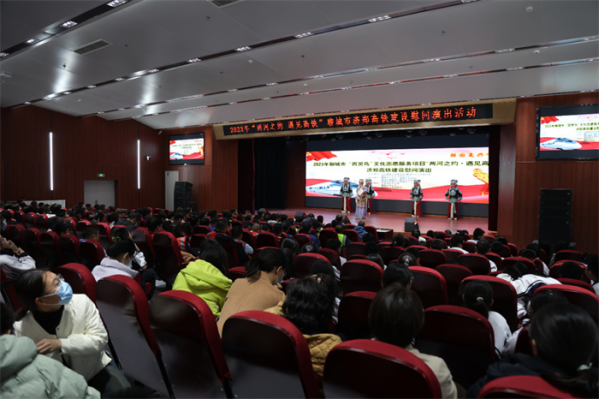 由中共聊城市委宣傳部、聊城市文化和旅游局、聊城市文學藝術界聯合會聯合主辦,聊城市文化館、聊城市京劇院、聊城市豫劇院、聊城市雜技團、聊城高鐵新區發展服務中心承辦,東昌府區文化館、聊城文軒中學、聊城東方教育集團協辦的2023年聊城市“百靈鳥”文化志愿服務項目“兩河之約 遇見高鐵”濟鄭高鐵建設慰問演出活動在聊城文軒中學西校區成功舉辦。