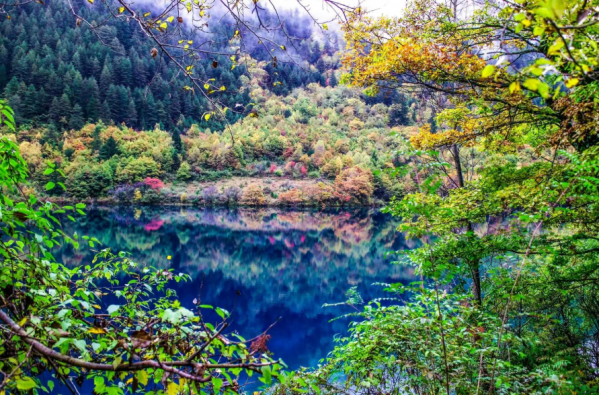 隨著季節的變化,九寨溝也呈現出不一樣的風姿;深秋的九寨溝享譽世界,只見漸次經霜的彩林深淺相間、錯落有致,是“萬山紅遍,層林盡染”的最佳寫照,在漫山遍野濃烈的紅襯托之下,碧水更綠、藍天更藍,呈現出光怪陸離的水景;待入冬,莽莽林海都覆上皚皚白雪,林海雪原似玉樹瓊花,潔白、高雅,是觀賞九寨六絕之“藍冰”和“雪峰”的最好時機。