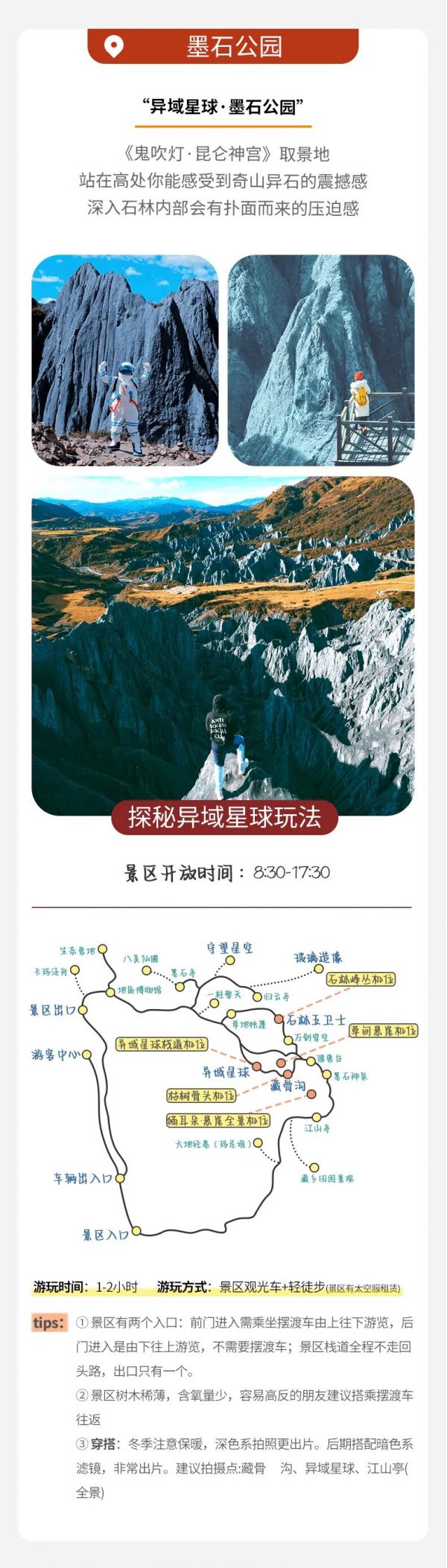 ? 【墨石公園】擁有壯美草原、婉約濕地、奇幻墨石、特色民居、高原花海、金色彩秋、白塔圣寺、日出日落八大奇觀?!按嘿p格桑夏避暑,秋觀彩林冬踏雪"是一年四季風(fēng)光的特色,而綿延在鮮水河斷裂帶上的墨石天然景觀更為世人向往,被譽(yù)為“中國最美景觀大道第八美 ”。
