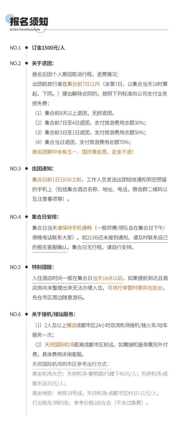 2、游客需提前54小時下午18點(diǎn)開始預(yù)定門票,如因游客自己的原因預(yù)定不成功無法進(jìn)入景區(qū)均與本社無關(guān),望報名知曉情況?。ㄎ覀儠湍泐A(yù)定購買門票,所以一定要提前告知證件信息)