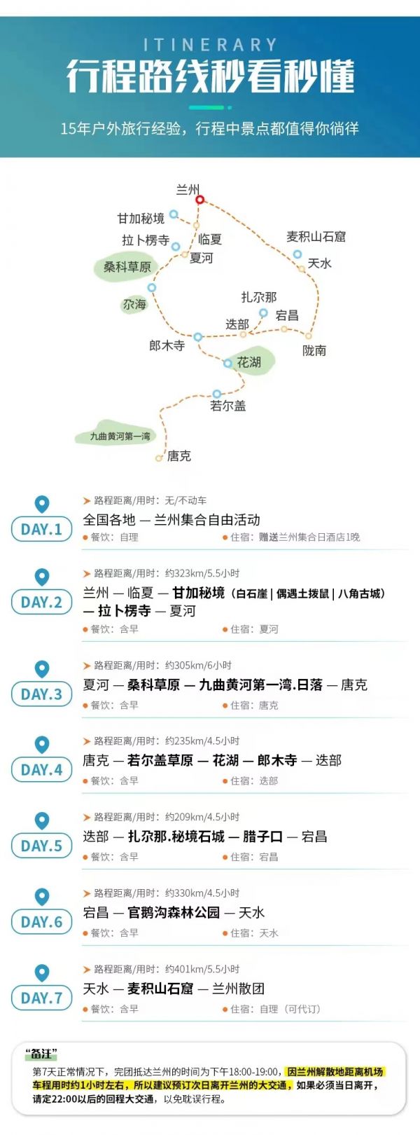 接站服務(wù):2人及以上免費(fèi)提供蘭州市區(qū)拼車接火車服務(wù),接火車的工作人員會在您出發(fā)日期前一天21:30之前向您推送消息并與您聯(lián)系,如果超過時間沒有接到任何通知,請及時與領(lǐng)隊或報名處聯(lián)系。(節(jié)假日用車人數(shù)較多情況下客人等待時間可能會延長;我方會安排臨近航班拼車接站,如遇其他客人航班火車延誤晚點(diǎn)情況,等待時間可能會延長,敬請諒解)