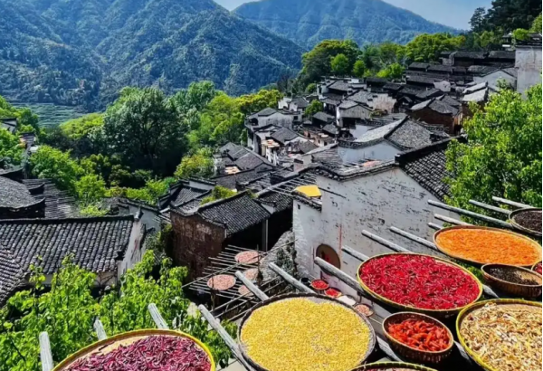 抵達虹關,虹關以古樟和徽墨聞名。拍攝虹關的古樟,這棵古樟樹干粗壯,枝葉繁茂。還可以拍攝虹關古街上的徽墨店鋪,記錄徽墨的制作工藝和銷售場景。
